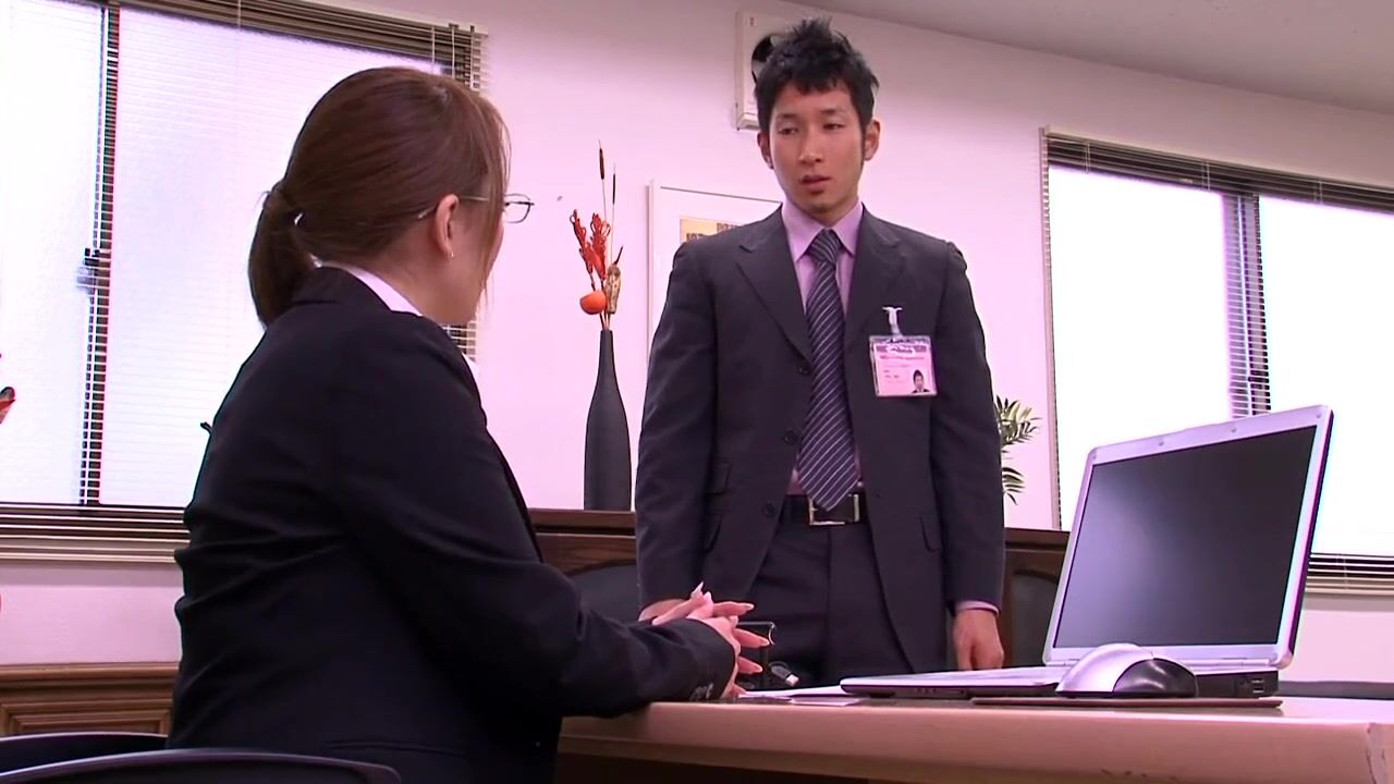 . Asian with giant big tits in purple lingerie playing with a guy at the office
