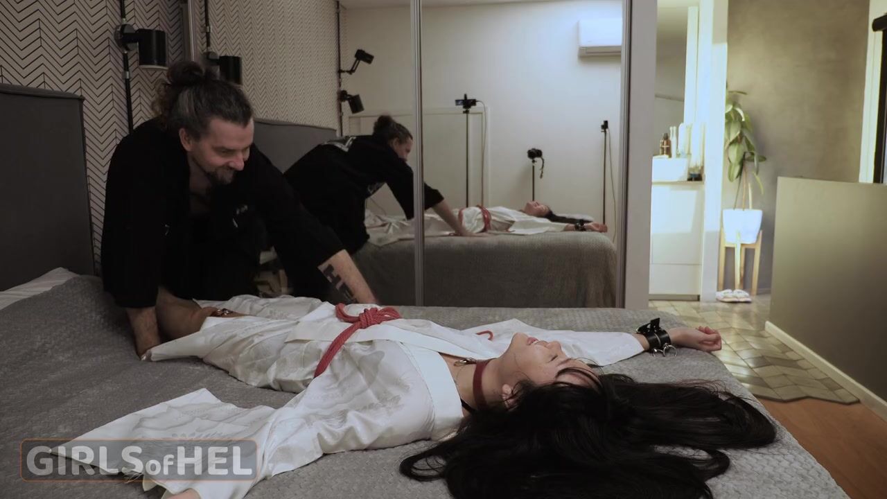 . Stepdad Flame Hel plays dress-up with his stepdaughter and puts her in a beautiful Japanese kimono. He ties her up in leather bondage gear and fucks her teen pussy.