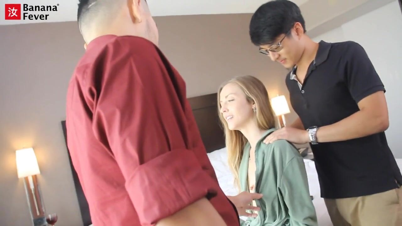 BLONDE SLUT KARLA KUSH TRAINED BY TWO ASIAN MAINTENANCE MEN - BANANAFEVER